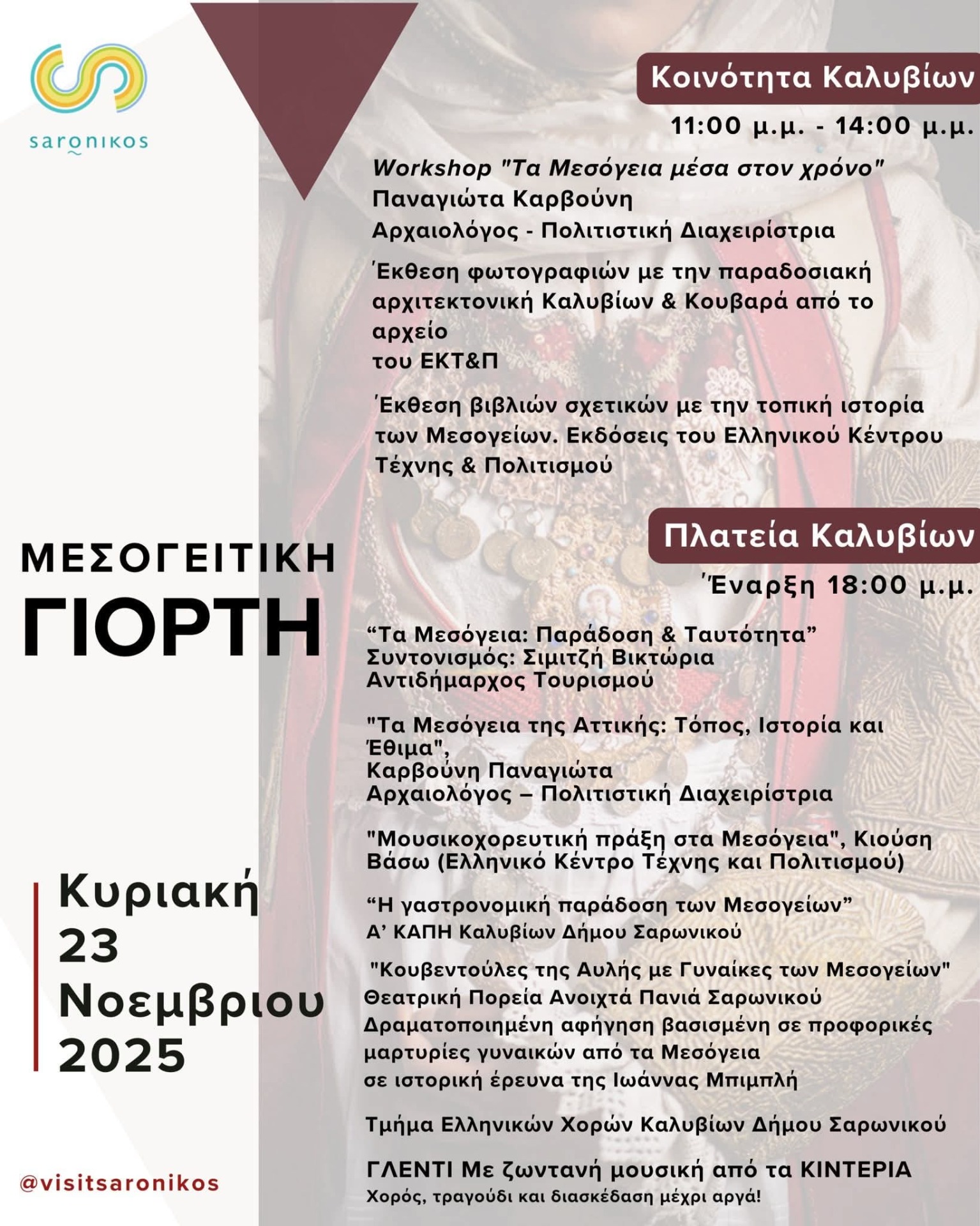 Ήρθε η ώρα για μία πιο ουσιαστική γνωριμία με τη Μεσογείτικη γη, που από το παρελθόν αποτέλεσε σταυροδρόμι ανθρώπων, παραγωγής, και πολιτισμού. Ανάμεσα στους φύλακες αυτής της ζωντανής παράδοσης και της ταυτότητας της περιοχής, ξεχωρίζουν οι Αρβανίτες από τα Καλύβια και τον Κουβαρά, αλλά και των γύρω περιοχών των Μεσογείων που με τη γλώσσα, τα τραγούδια, τα έθιμα και τους χορούς τους κράτησαν άσβεστη τη φλόγα της τοπικής ταυτότητας.