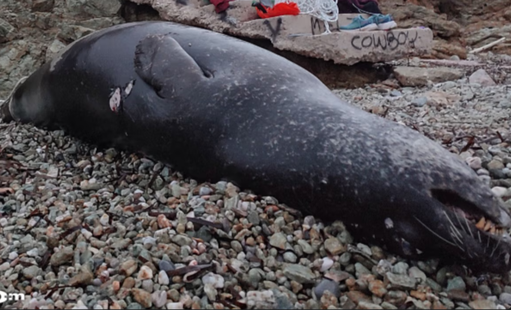 φώκιας στην ακτή του Μαύρου Λιθαριού. Το ζώο έφερε σαφή τραύματα από