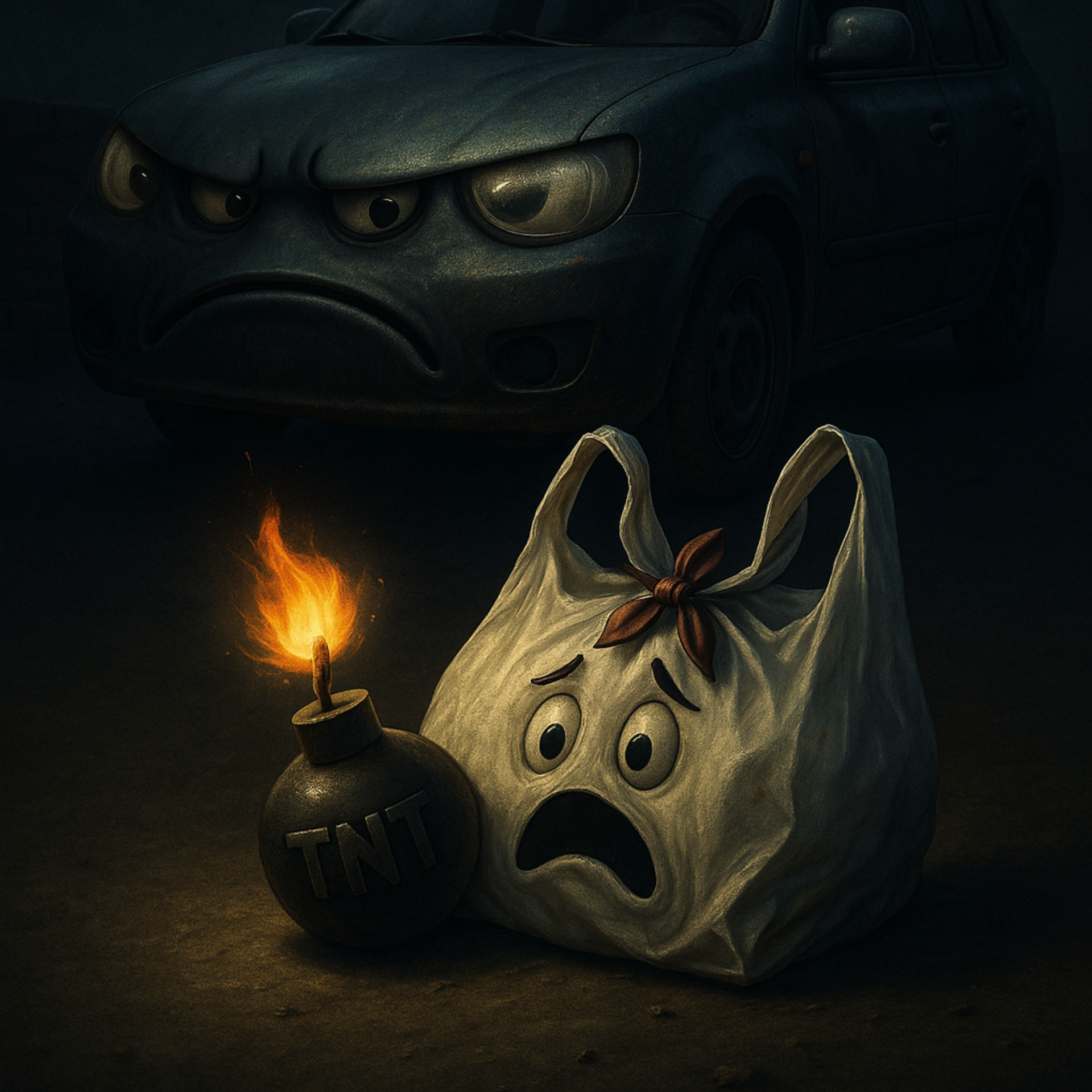 Ο ιδιοκτήτης πάει να μπει στο αυτοκίνητο, σκύβει, βλέπει μια σακούλα. Και κάπου